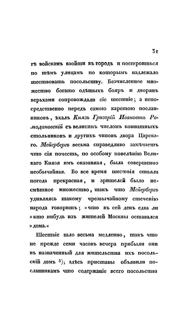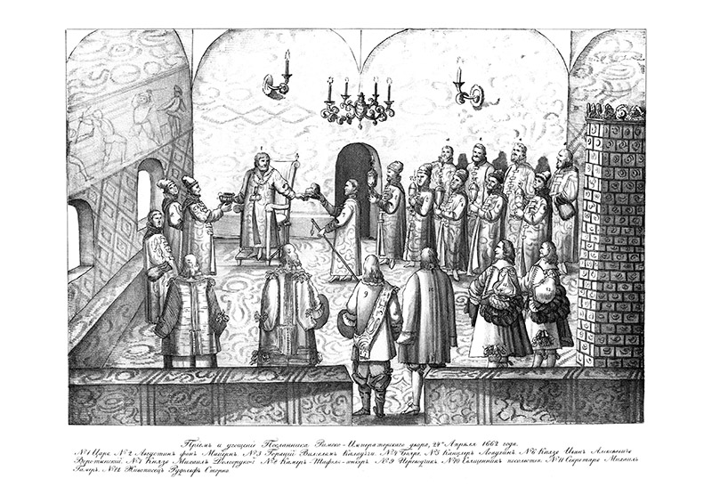 Августин Мейерберг (1622–1688) — австрийский придворный советник и дипломат, в 1661–1662 гг. посетил Россию с дипломатической миссией. Из ряда многочисленных записок иностранных дипломатов, посещавших Русское государство в годы правления царя Алексея Михайловича (1645–1676), произведения А. Мейерберга выделяются как наиболее обширные и подробные. В 1827 г. вышла на немецком и русском языках книга «Барон Мейрберг и путешествие его по России», изданная историком, философом и библиографом Ф. П. Аделунгом (1768–1843) на основе рукописей Мейерберга, хранившихся в Королевской библиотеке Дрездена.