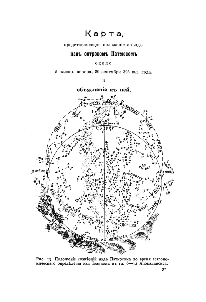 Николай Александрович Морозов (1854-1946) — чрезвычайно яркая и колоритная личность своей эпохи: член радикальной революционной организации «Народная воля», политкаторжанин, ученый с противоречивой репутацией, очень своеобразный писатель и мыслитель. В своем сочинении Н.А.Морозов обращается к интерпретации текста «Апокалипсиса» с точки зрения содержащейся в нем астрономической информации. Он использует новый метод определения времени по погодным и астрономическим явлениям, которые, повторяясь циклично с промежутками от нескольких десятков до нескольких тысяч лет, создают неповторимые сочетания, дающие возможность, по мнению ученого, точно датировать те или иные исторические события. Подход Н.Морозова позволяет сделать вывод о том, что создание «Апокалипсиса» относится не к 60-м годам I века н. э., а к 395 году, и авторство принадлежит с большой долей вероятности Иоанну Златоусту. Заодно Н.Морозов переворачивает все существовавшие до этого представления о хронологии и персоналиях раннехристианской эпохи.