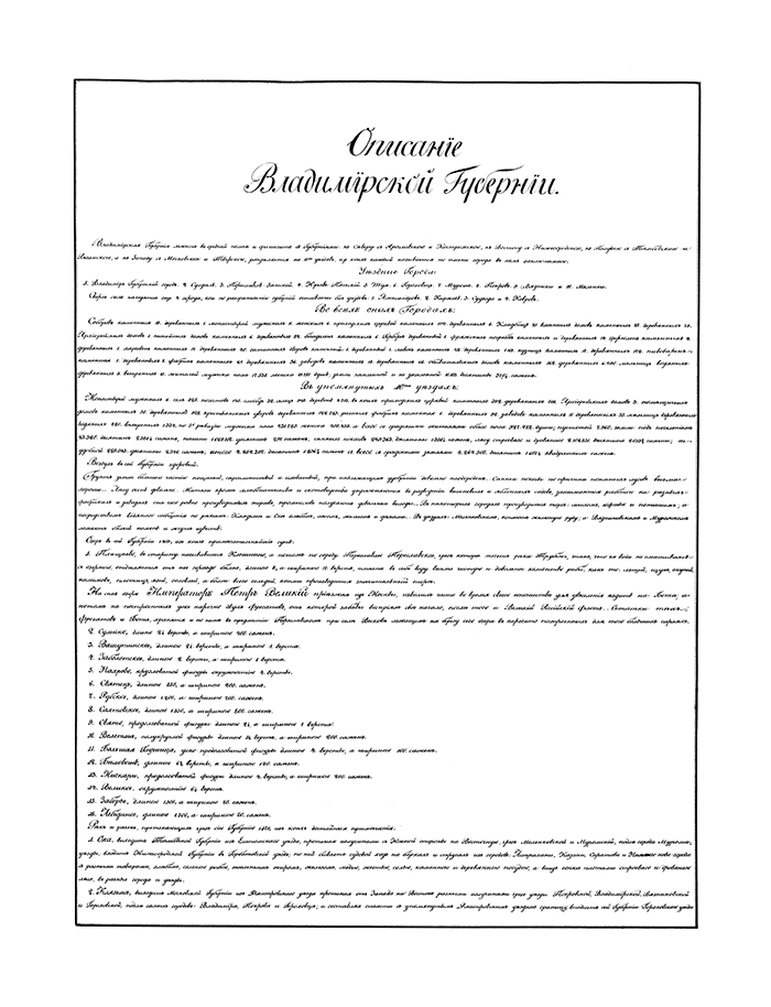 Рукописный атлас Владимирская губернии — выдающийся памятник достижений отечественной картографии XVIII века, являющийся неоценимым источником при изучении географии, истории, этнографии и сельского хозяйства.