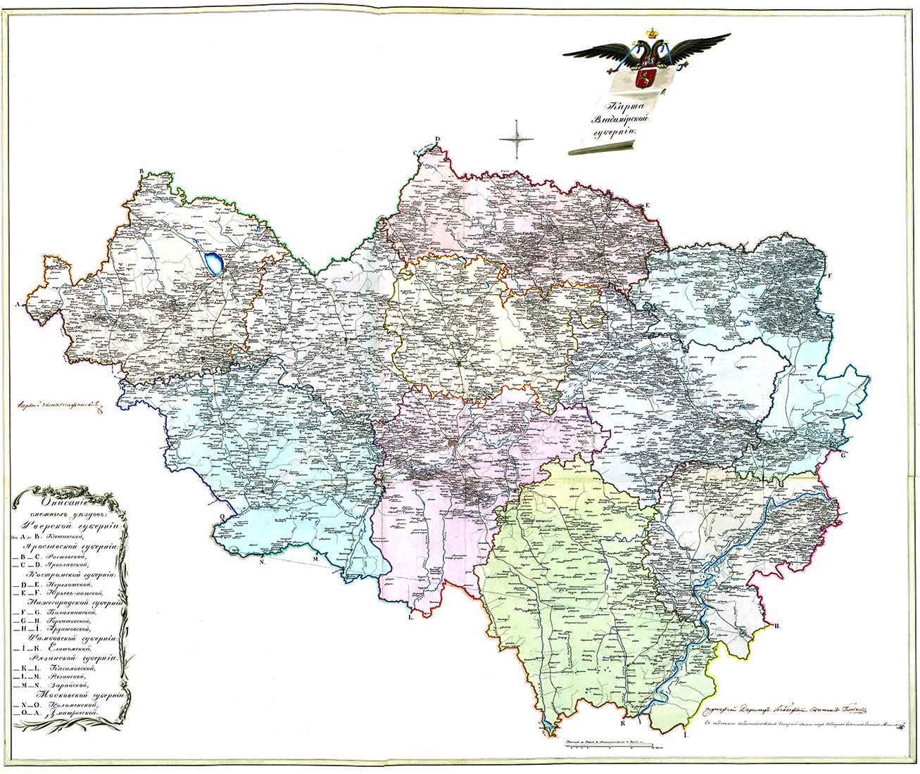 Владимирская губерния была образована в 1778 году. До этого времени она входила в состав Московской губернии как провинция. Необходимо отметить ряд изменений в границах уездов внутри губернии со времени Екатерины Второй 1778 года до Александра Первого. В частности, Киржачский уезд исчез и был поделен между Покровским, Александровским и Юрьев-Польским.