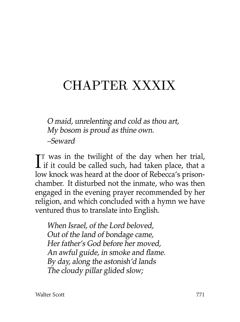 Вальтер Скотт (1771—1832) — шотландский прозаик, поэт, классик мировой литературы, основоположник жанра исторического романа. Писатель обладал феноменальной работоспособностью, публикуя по два романа в год. Он написал двадцать восемь романов, девять поэм, много повестей, литературно-критических статей, исторических трудов.