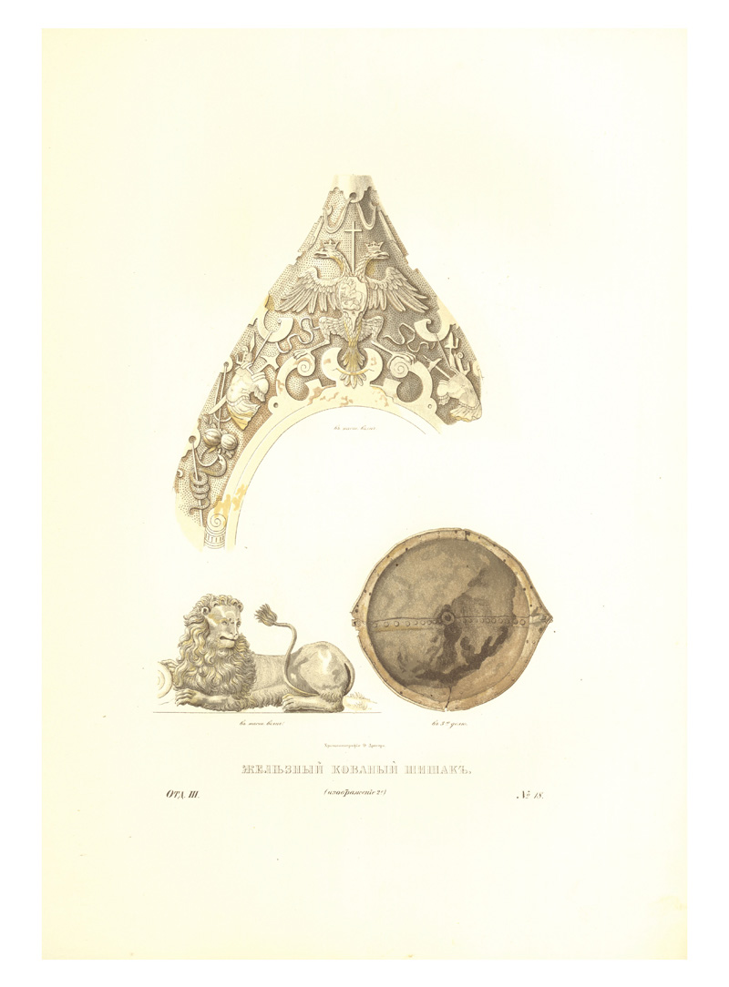 Одно из самых редких и уникальных русских художественных изданий, изданного по высочайшему повелению государя императора Николая I, посвящённое древнерусскому защитному вооружению.