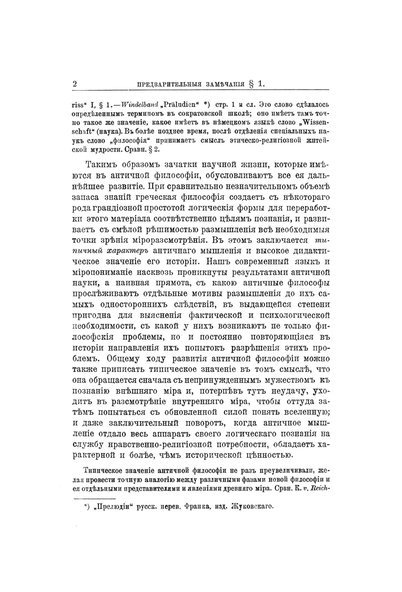 Немецкий философ-идеалист, глава баденской школы неокантианства Вильгельм Виндельбанд (1848–1915) по праву принадлежит к числу классиков историко-философской науки. Его труды по истории философии и сегодня сохраняют свою ценность, причем не столько благодаря богатству исторического материала, сколько в силу оригинальности сформулированных мыслителем методологических принципов историко-философского познания. Известность ему принесли труды «История древней философии» и двухтомник «История новой философии», в которых философские системы прошлого излагаются с кантианских позиций.