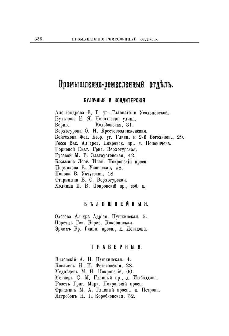 В обширном справочном отделе можно почерпнуть информацию о храмовых праздниках и крестных ходах, обязательных постановлениях для жителей города, времени проведения ярмарок, о театрах, клубах и собраниях, периодических изданиях, библиотеках, книжных магазинах, типографиях, гостиницах, ресторанах, кухмистерских, о работающих в городе врачах, архитекторах, настройщиках инструментов, учителях музыки. Здесь же опубликованы правила пользования почтово-телеграфной связью, таксы на отдельные виды услуг, ряд материалов о банках и кредитах, расписание движения поездов. Адресный указатель учреждений Екатеринбурга построен согласно профилю деятельности заведений: духовные, административные, общественно-сословные, судебные, кредитные и др.