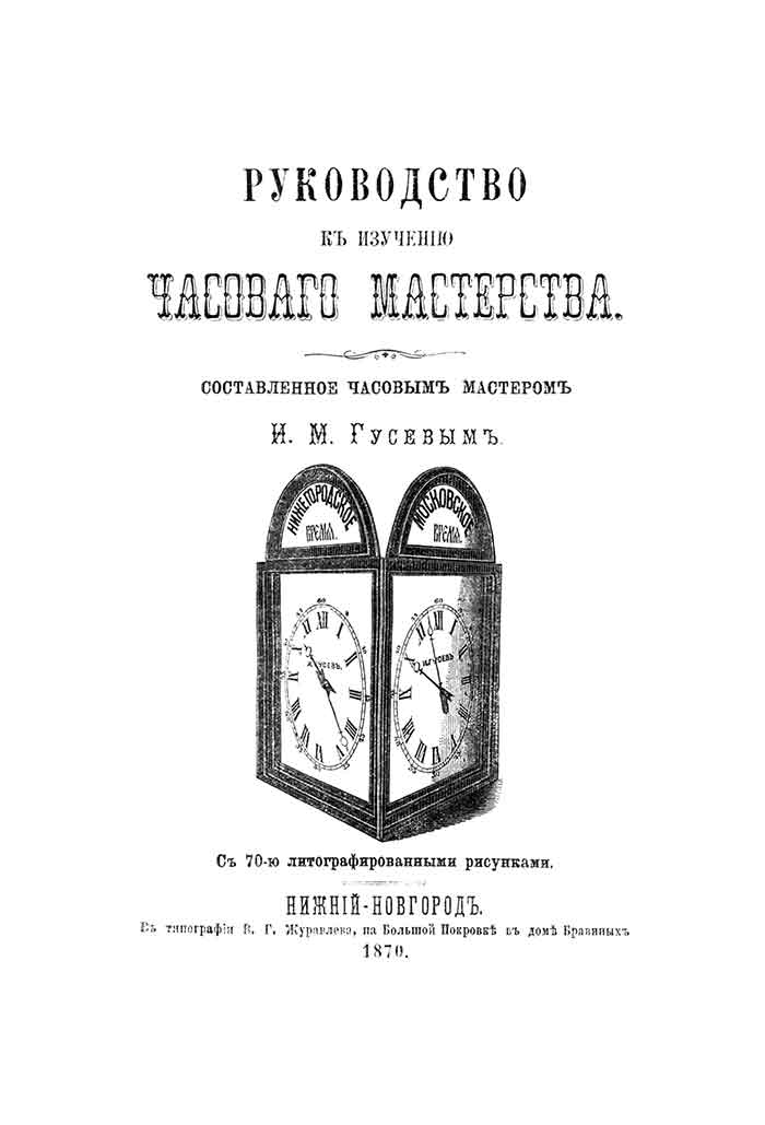Гусев И. М. «Руководство к изучению часового мастерства». — Подарочное репринтное издание оригинала 1870 г. (Переплет ручной работы из натуральной кожи)