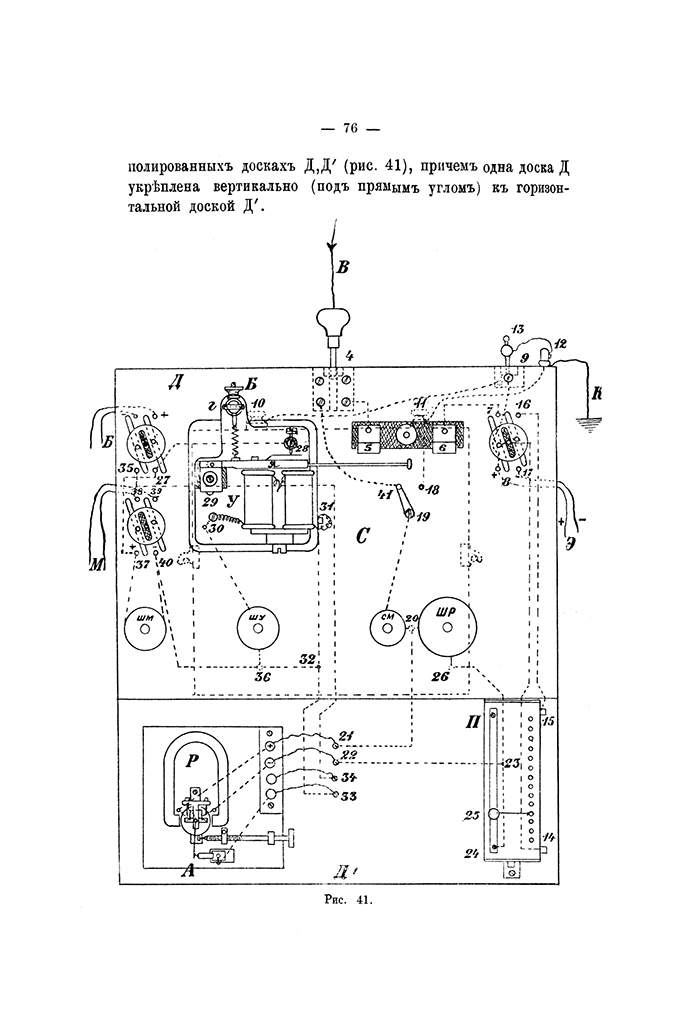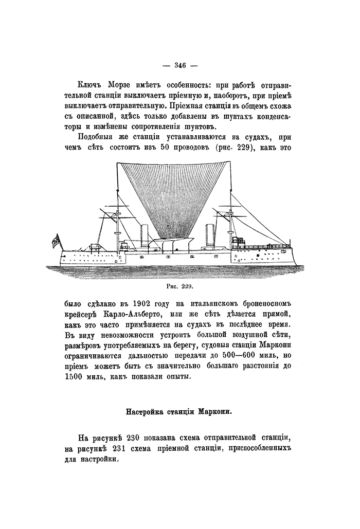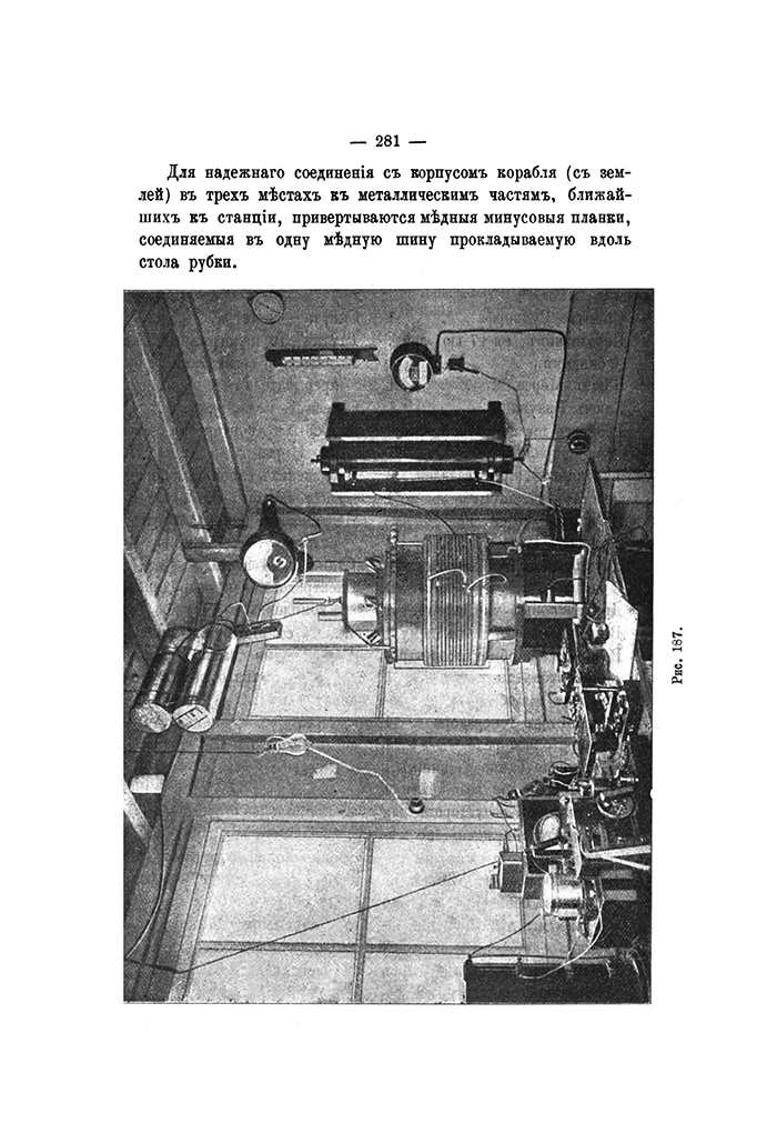 Настоящее руководство составлено по поручению начальника учебно-минного отряда контр-адмирала К. М. Тикоцкого для класса телеграфистов, основанного при минной школе Балтийского флота в 1904 г. В издании описаны принципы работы радиостанций эпохи Русско-японской войны, а также радиостанции кораблей Российского императорского флота.