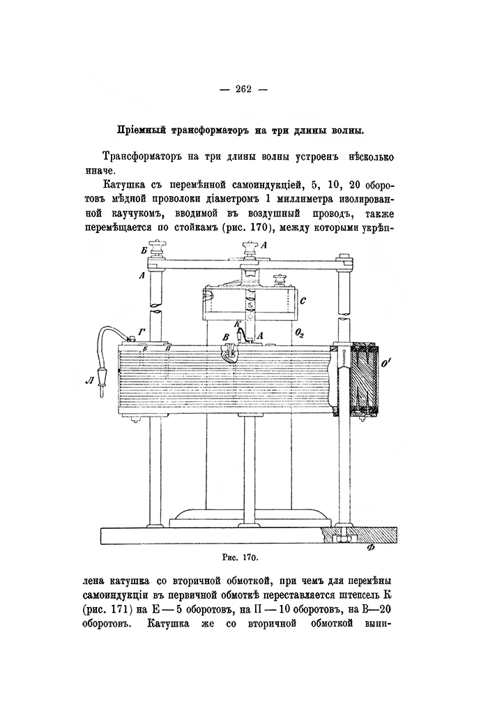 Учебник состоит из пяти отделов: в первом даны понятия колебательного разряда и электромагнитных волн; во втором приводится описание беспроволочного телеграфа А. С. Попова – Э. Дюкрете; в третьем описан беспроволочный телеграф системы «Телефункен»; в четвертом рассматривается азбука Морзе и работа на телеграфном ключе; в пятом рассказывается о беспроволочном телеграфе Г. Маркони. Книга содержит более двухсот рисунков в тексте и на отдельных листах. При создании учебника автору оказал поддержку и дал ряд ценных указаний русский изобретатель радио, профессор Электротехнического института императора Александра III А. С. Попов.
