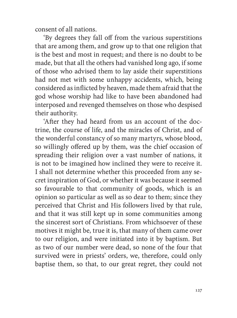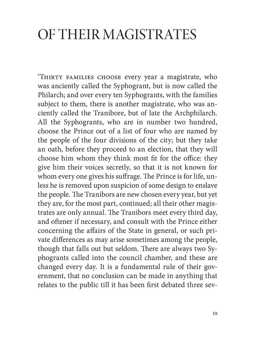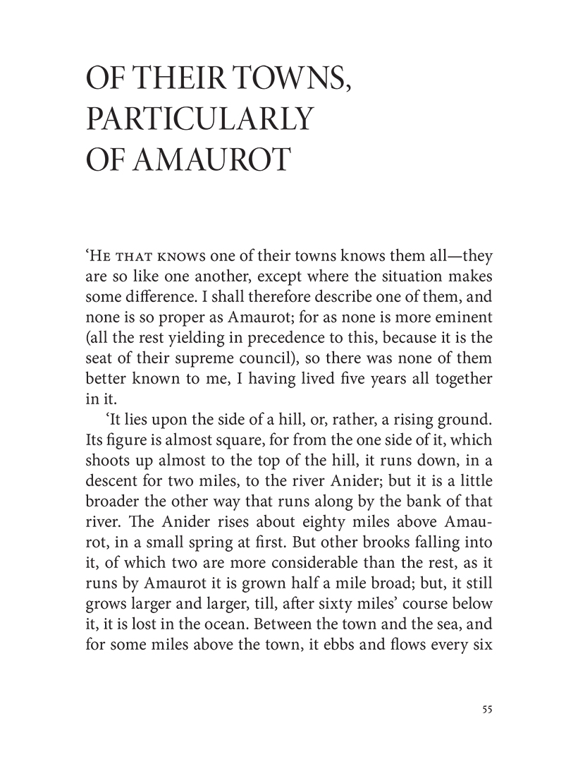 Книга считается одним из первых произведений жанра утопической литературы и оказала значительное влияние на развитие политической философии, социальных теорий и идей о возможных путях совершенствования общества. В нем поднимаются вопросы о справедливости, равенстве и роли государства в обеспечении благополучия граждан.