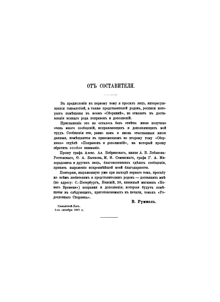 «Родословный сборник русских дворянских фамилий» В. В. Руммеля и В. В. Голубцова представляет собой лучший образец русской классической генеалогической литературы XIX века.