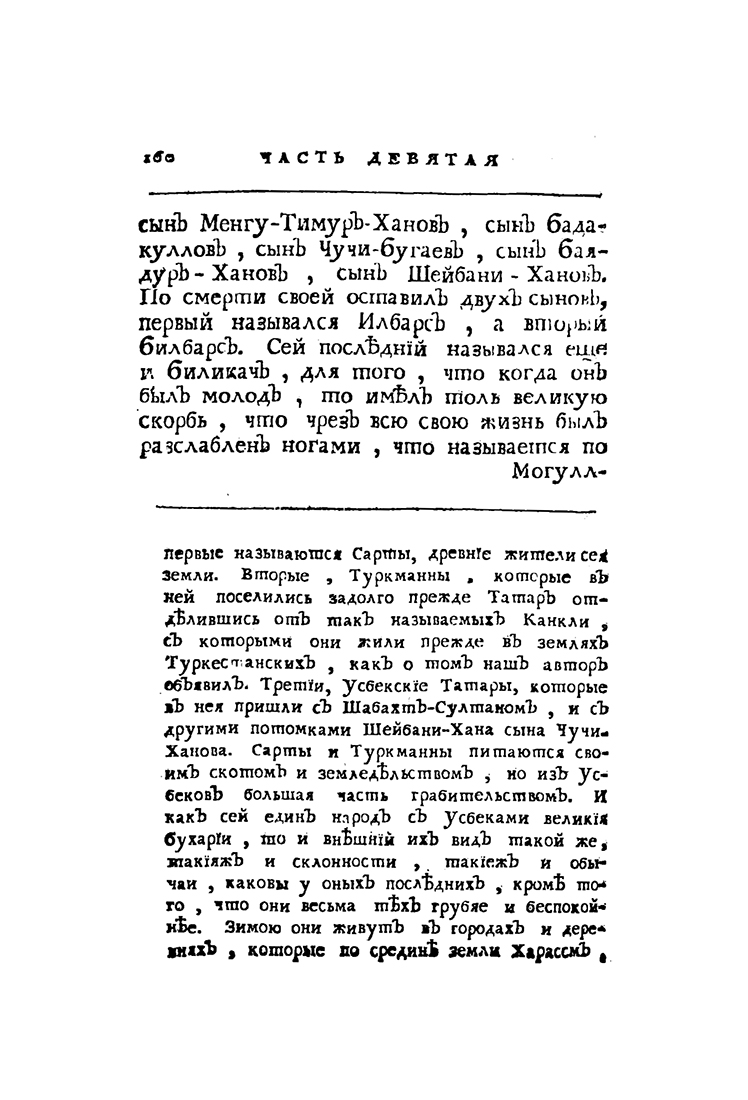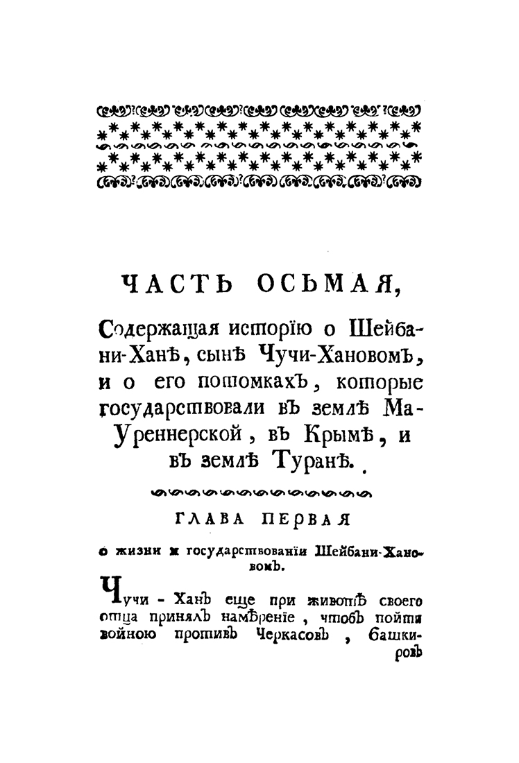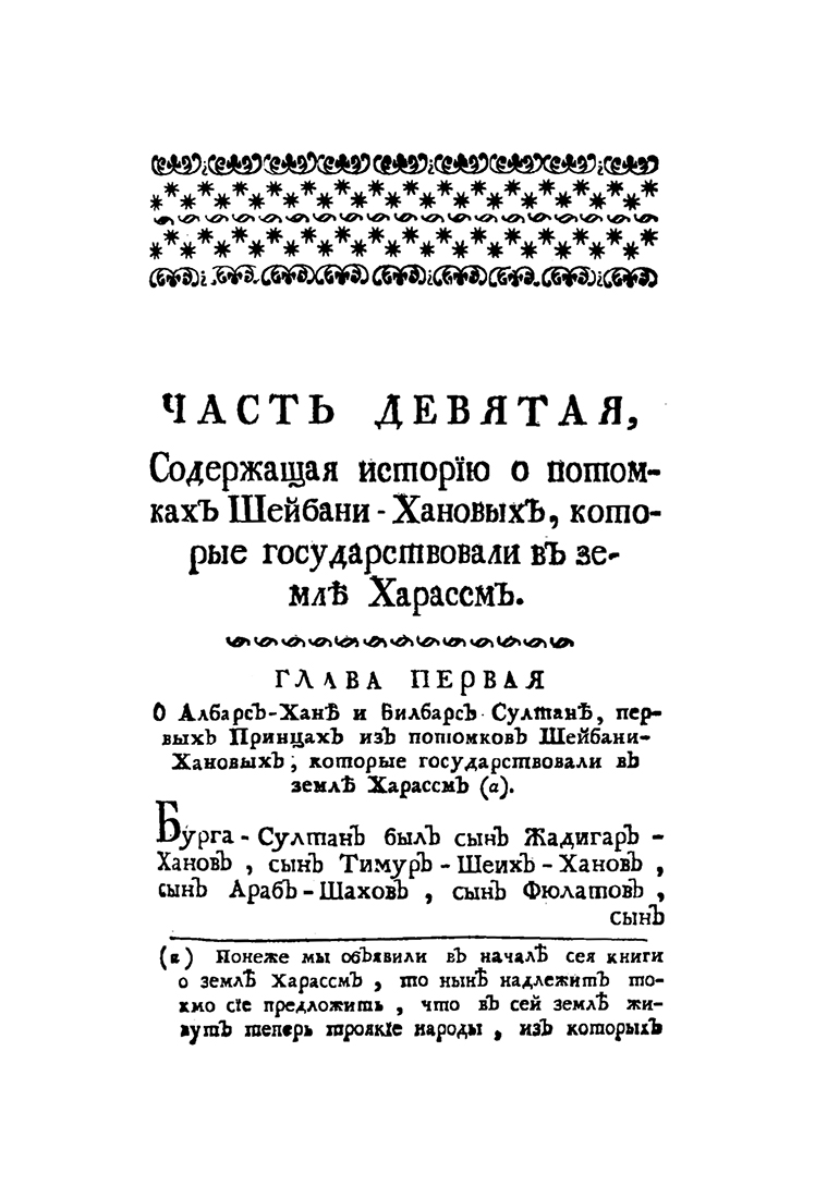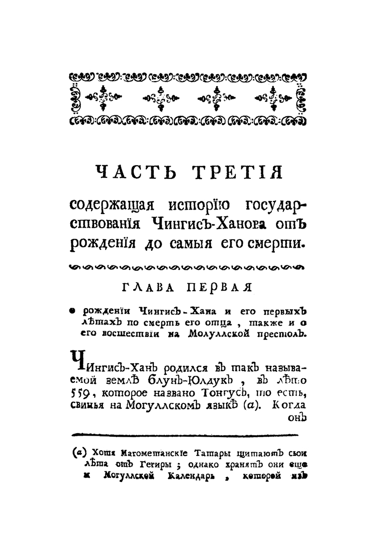 Данное издание является раритетным историческим источником по генеалогии, истории и географии тюркского этноса и Северной Азии. Это перевод на русский язык исторического труда Абулгази-Баядур-Хана «Родословное древо тюрок», написанного им в 1660–1663 годах. Закончил сочинение его сын Мухаммед Ануш, который довел повествование до 1663 года. Рукопись была открыта подполковником шведской армии Ф. И. Т. Страленбергом в Тобольске, где он находился в ссылке после Полтавского сражения (1709). Она была записана русским писцом со слов татарского переводчика. Швед Шенстрем, по поручению русского царя положивший начало научному изучению истории, географии и топографии Сибири, сделал перевод на немецкий язык. Сочинение было издано в Брюсселе Варенном (Varenne de Mondasse) в 1726 году уже на французском языке. Оно вышло под названием «Histoire généalogique des Tartares, traduite du manuscript tartare d Abulgasi-Bayadur-Chan» с подробными примечаниями Бетинка.