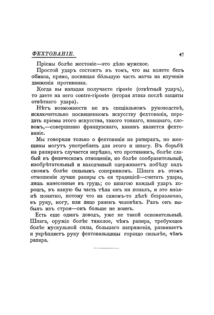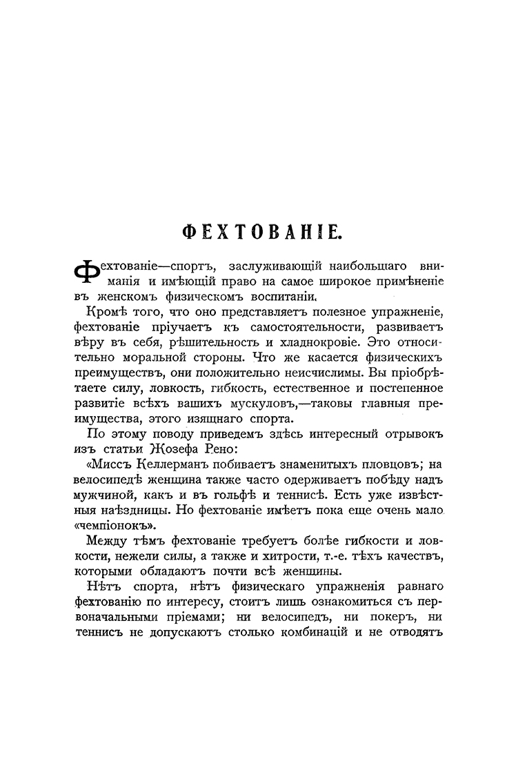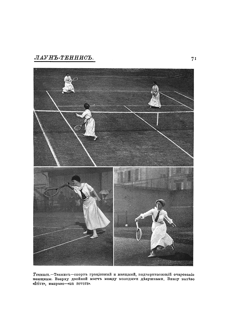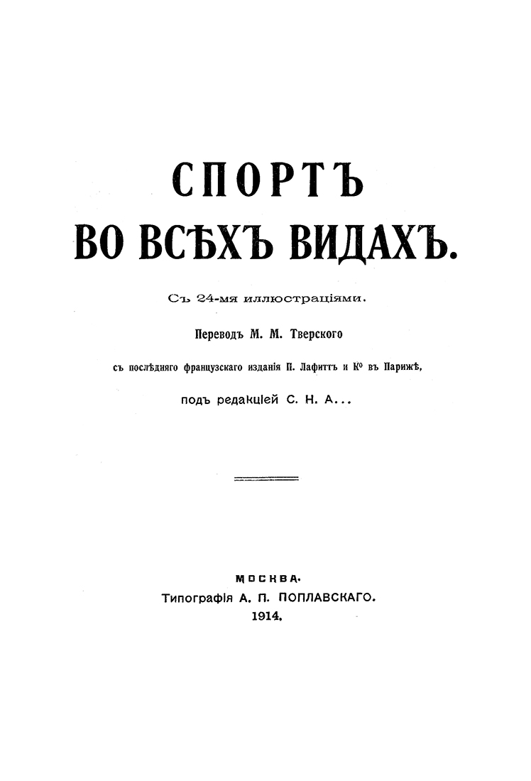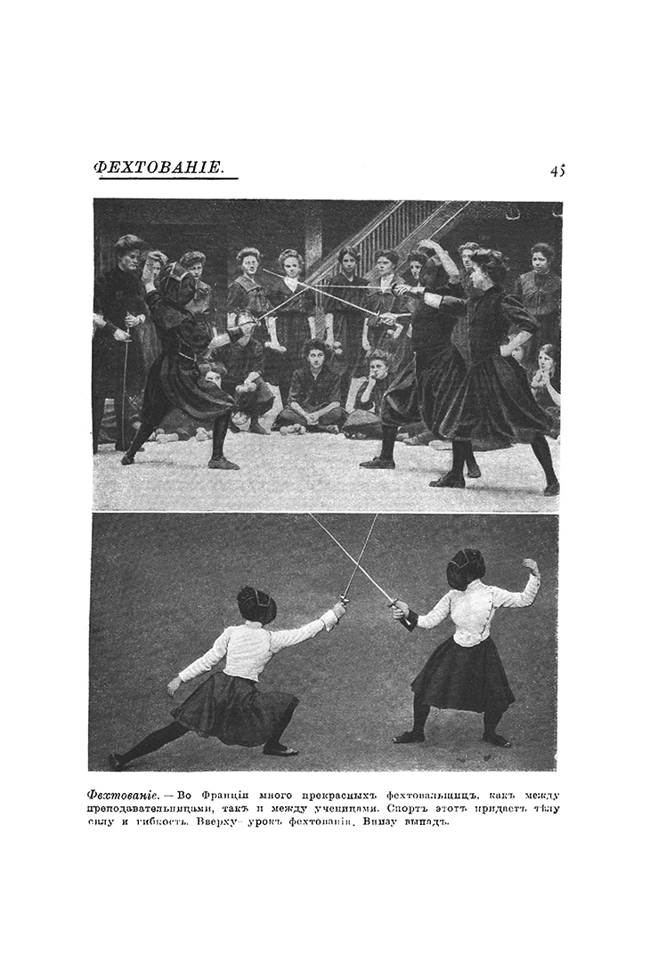 Одним из самых информативных и популярных пособий стала иллюстрированная книга «Спорт во всех видах», изданная П. Лафитт и Ко в Париже, выдержавшая несколько переизданий. Книга содержит не только краткие и точные описания разных видов спорта, предлагаемых дамам к освоению, но и множество советов, как, укрепляя мускулатуру, сохранить изящество, грациозность.