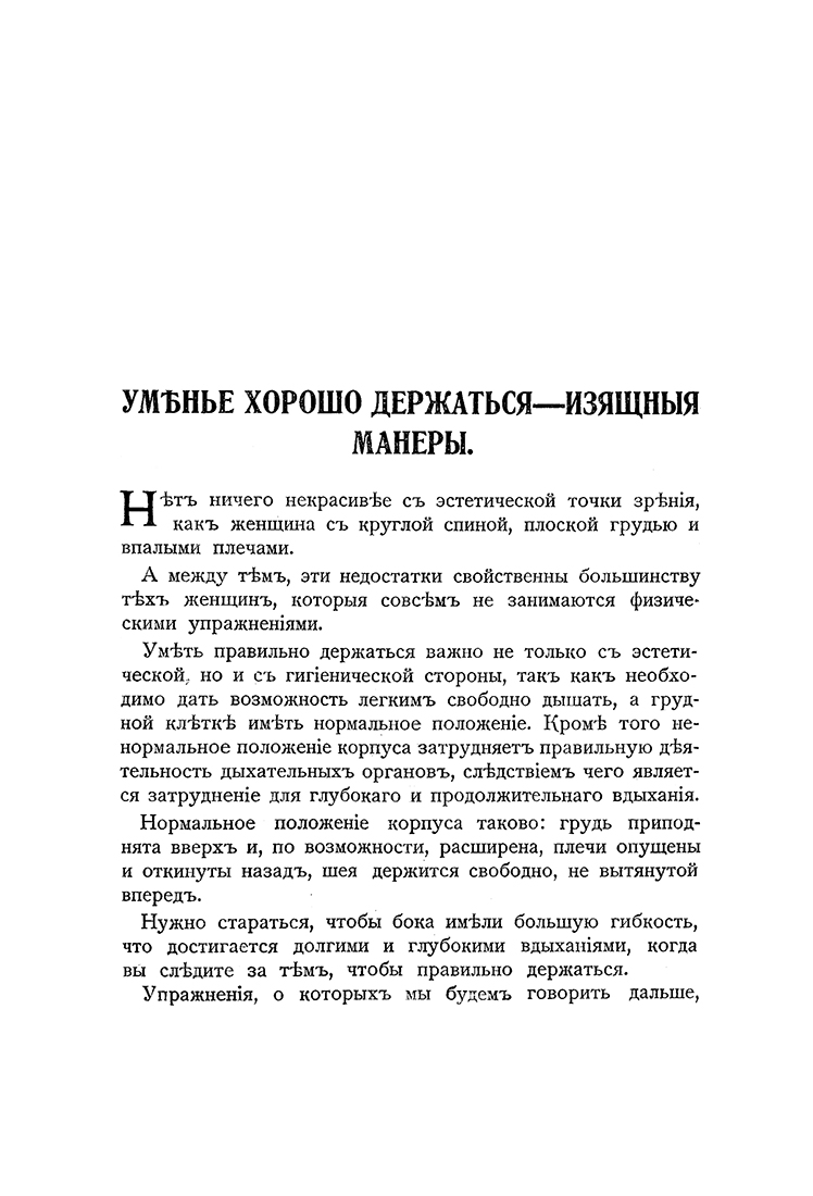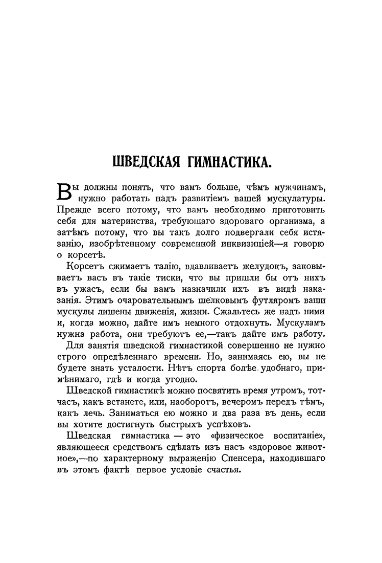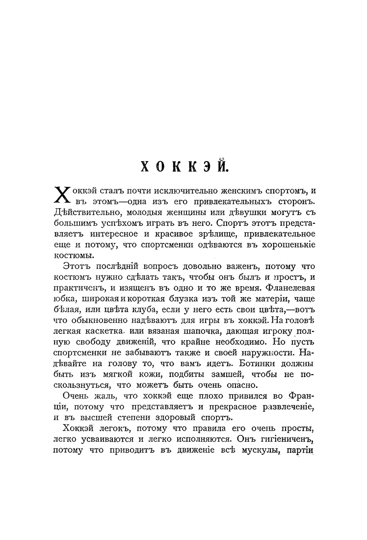 Что примечательно, многие из описанных в книге видов спорта на тот момент считались исключительно мужскими развлечениями. Однако в начале XX века женская спортивная мода начала стремительно меняться. Дамы открыли для себя чисто мужские виды спорта, и занялись стрельбой и боксом, хоккеем и джигитовкой, лаун-теннисом и гольфом, пилотированием аэропланов и вождением автомобилей, охотой с гончими и ружейной охотой. Для освоения этих мужских видов спорта нужны были обучающие пособия, большинство которых были написаны иностранными авторами.