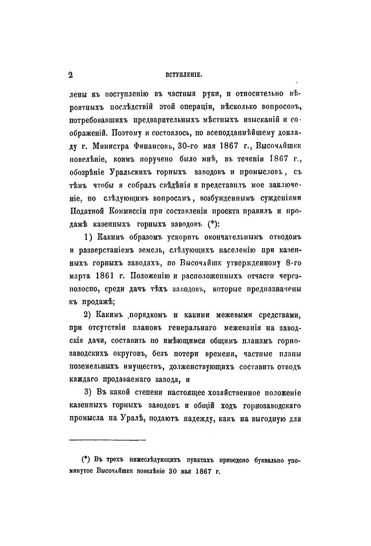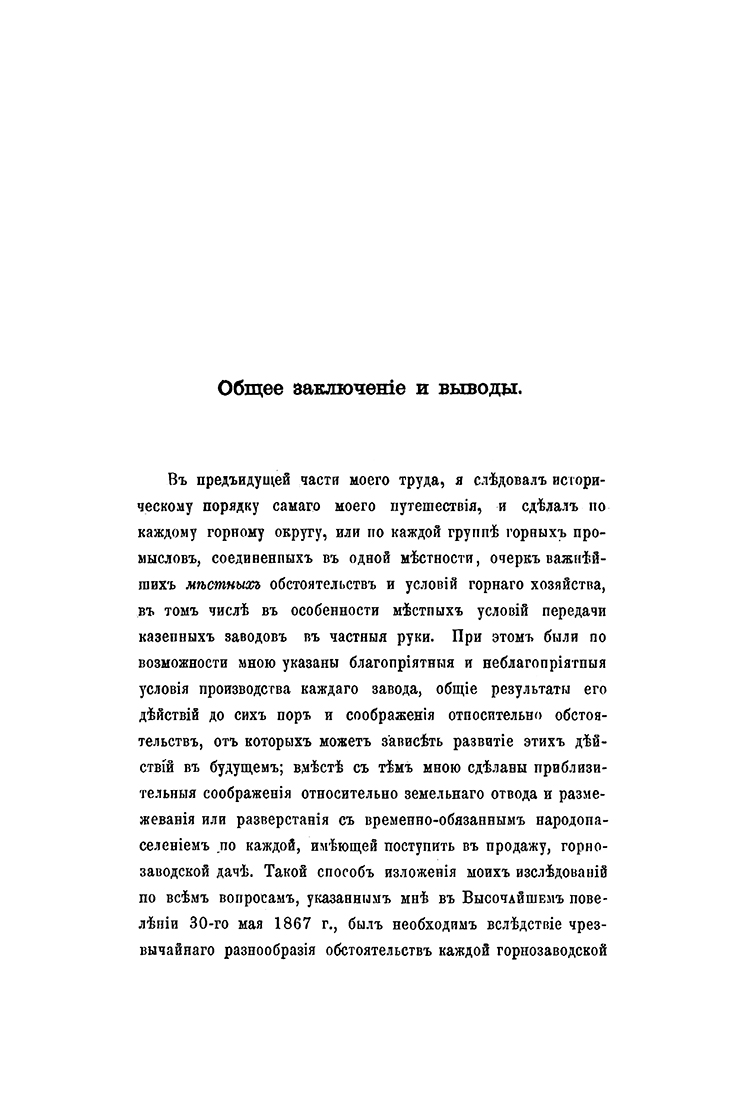 Данное издание является уникальным исследованием уральской горной промышленности. Она написана автором по итогам обследования уральских казенных и частных заводов в 1867 году. Свой фундаментальный труд он создал по заданию Комиссии для пересмотра системы податей и сборов при Министерстве финансов. Главная проблематика исследования — стоит ли продавать казенные горные заводы Урала в частные руки? Она была связана с Великими реформами 1860-х годов, призванными перевести экономику Российской империи на капиталистические рельсы.