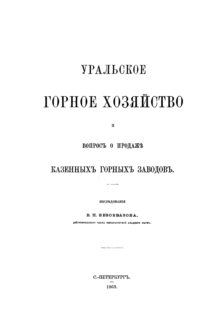 Безобразов В. П. «Уральское горное хозяйство и вопрос о продаже казенных горных заводов». — Подарочное репринтное издание оригинала 1869 г. (Кожаный переплет для истинных ценителей)