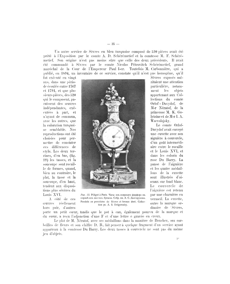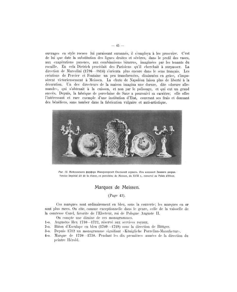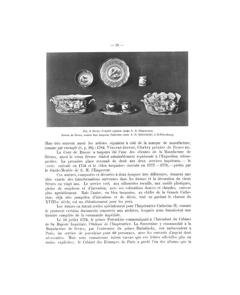Альбом посвящен одной из нескольких самых пышных российских выставок начала XX века, которая проходила в 1904 г. в Большом выставочном зале музея Училища барона Штиглица в Санкт-Петербурге. На ней были представлены великолепные экспонаты из частных собраний: предметы из глины, фарфор (производства фабрик Западной Европы и России), предметы из благородных металлов (восточное и западно-европейское серебро, русское серебро, эмаль, золото), предметы из камня, деревянная мебель, веера из слоновой кости, оловянное и железное оружие, тканые, шитые и плетеные предметы. Фотографии многих из них появились впервые в этом альбоме.